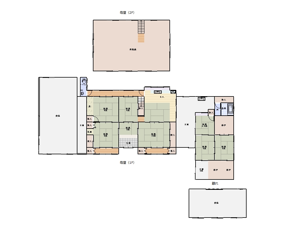 | 特記事項 | ・離れ(1階 和室6帖×2 和室4.5帖 浴室 納戸)あり ・物置×2棟 あり ・3台分の駐車スペースあり |